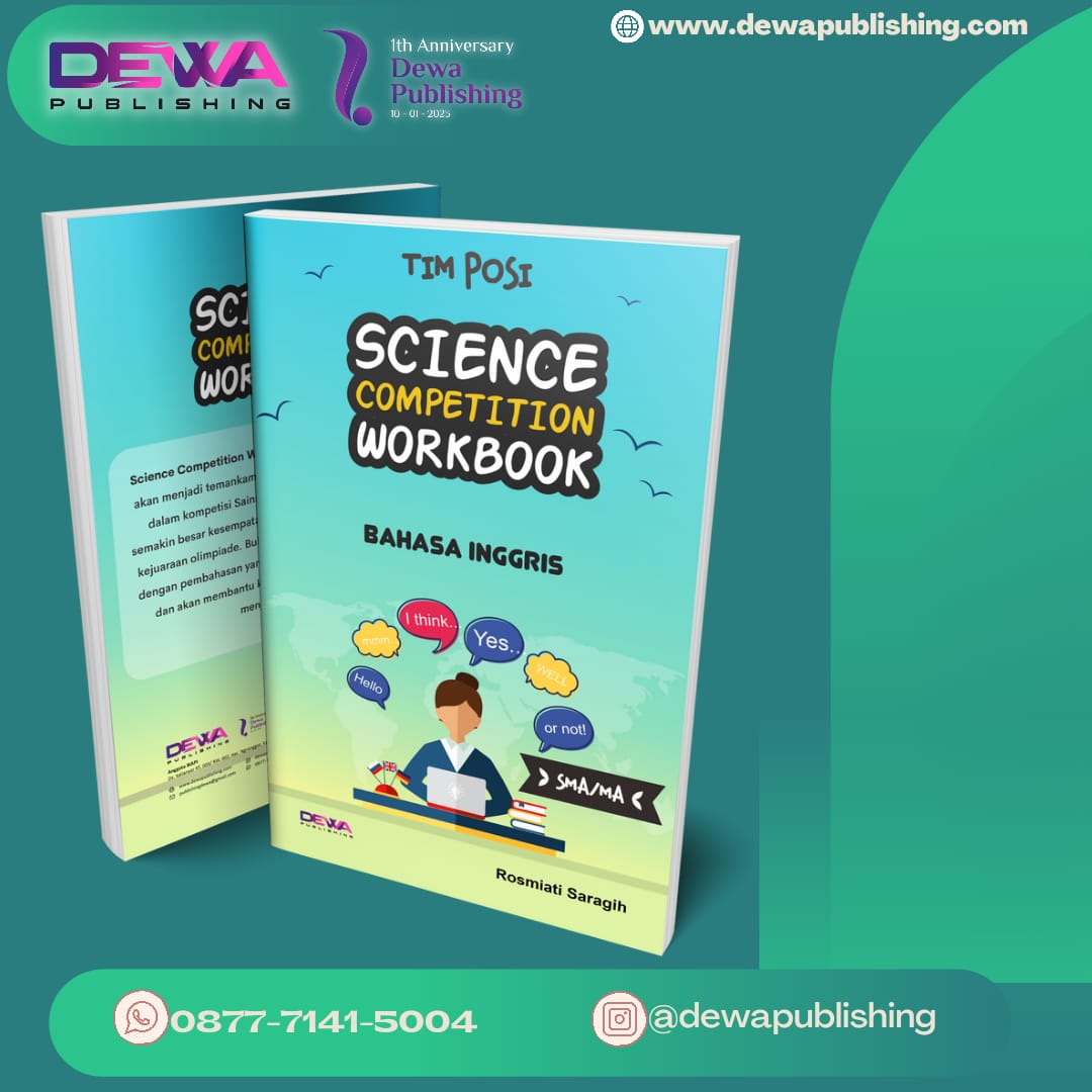 Buku ini disusun untuk memenuhi kebutuhan siswa/i agar dapat mengasah kemampuannya dalam berlatih menghadapi Kompetisi maupun Lomba Bahasa Inggris/ Berbahasa Inggris ditingkat Sekolah maupun tingkat Nasional. Banyak Kompetisi Bahasa Inggris/ Berbahasa Inggris yang diadakan baik oleh pihak swasta maupun pemerintah mulai dari jenjang sekolah hingga Nasional. SCIENCE COMPETITION WORKBOOK BAHASA INGGRIS SMA/MA ini merupakan kumpulan soal-soal kompetisi Bahasa Inggris berskala nasional dan juga dilengkapi dengan pembahasan yang dapat membantu para siswa agar semakin siap dalam menghadapi setiap kompetisi berbahasa inggris.